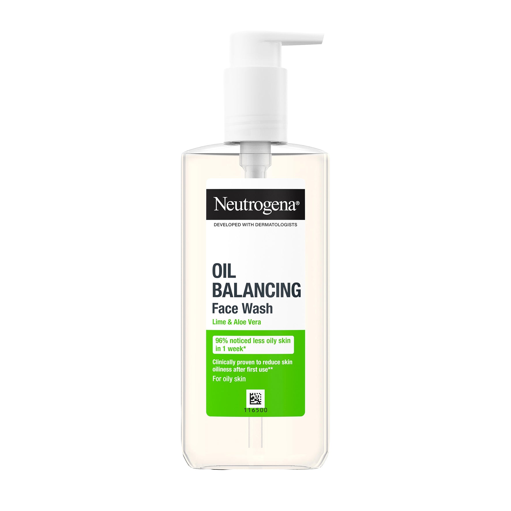 Neutrogena Oil Balancing Face Wash Lime & Aloe Vera with pH level 4.5. This gentle, yet effective, face wash works quickly to balance the skin by removing excess oil and makeup, visibly tightens pores and provides a lasting mattifying effet.